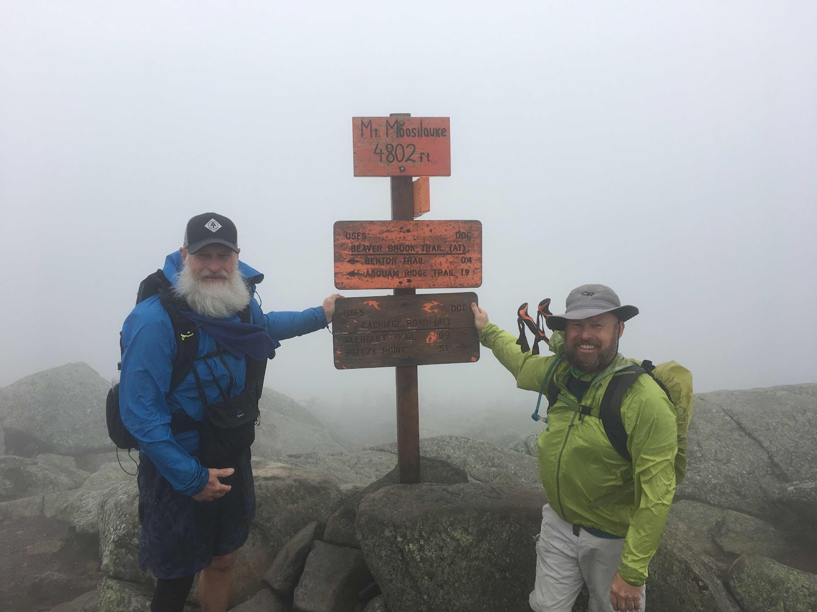 Short day over Mt Moosilauke today at 9.3 miles. Started at 8 and completed around 1:15. The weather was rainy and visibility on the ridge was poor. The climb going up the Northside was rocky and steep but I felt good. I reached the Shelter (1.5 miles) in 1hr and 10 mins. With less than a mile to go I got turned around at a road crossing. I spend 40 minutes hiking around before reconnecting with the correct trail before completeing the section. My walk app on my phone reads 14.6 miles so I did get some extra exercise today. I met man and son hiking today. Dad’s trail name is Mozzie Mike and he has a YouTube channel.https://youtu.be/z1hPHcGWznU . Check it out.